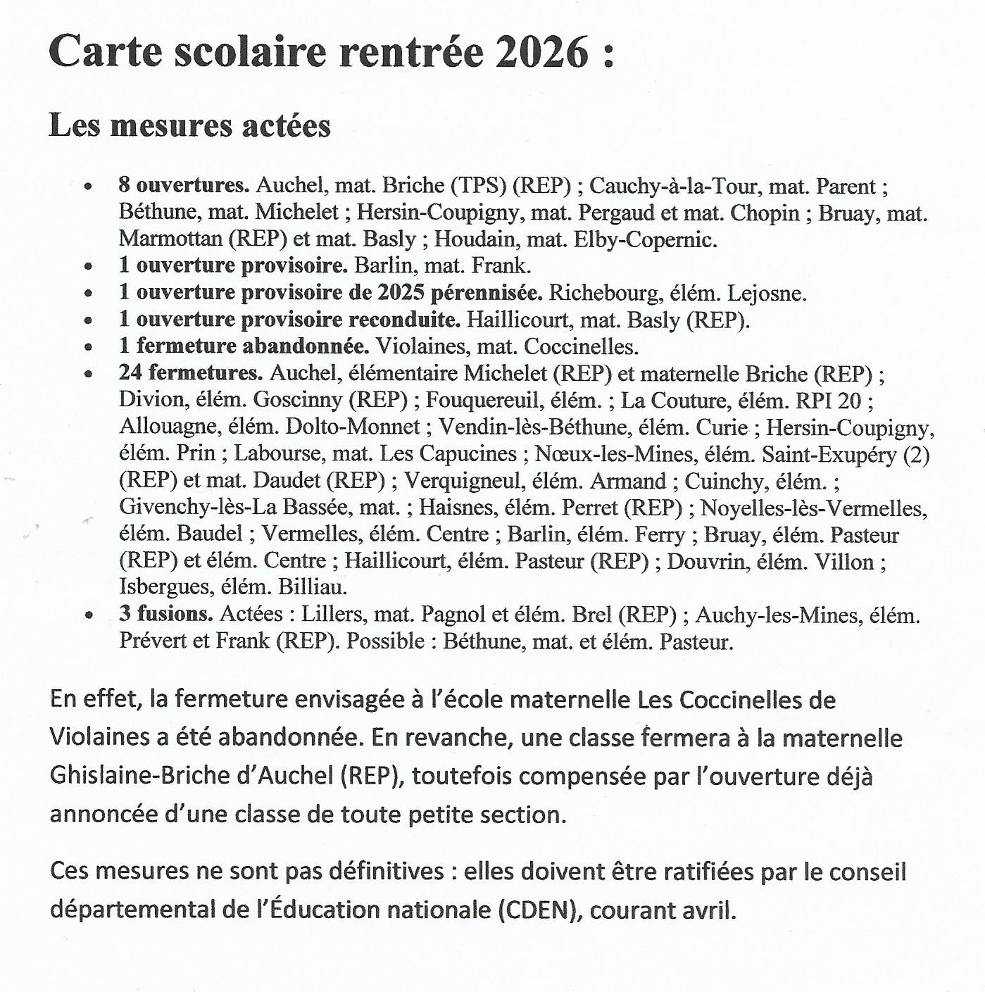 - Les prévisions pour la rentrée de septembre suite au CDEN du 31 Mars